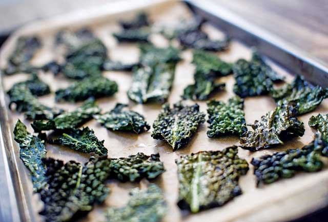 A sütőt melegítsük elő 120 Celsius fokra. A leveleket mossuk meg szódabikarbónás vízben, majd folyó vízben is és vágjuk apró darabokra. Egy edényben az összes hozzávalóval összedolgozzuk. Béleljünk ki egy tepsit sütőpapírral és tegyük rá az ízesitett leveleket. Csak egy sor levelet rakjunk, hogy hamarabb kész legyen. Süssük 20-25 percig.