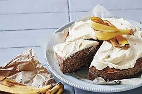 A banán héját mossuk meg szódabikarbónás vízben, majd folyó vízben is. Vágjuk apró darabokra és a vízzel turmixoljuk össze. Ez sötét színű lesz, ne ijedjünk meg. A tojássárgáját, a cukrot és a Ghee-t keverjük össze. Adjuk hozzá a lisztet, a szódabikarbónát és a banánhéj keveréket. A tojásfehérjéket a sóval verjük fel, majd adjuk a masszához az ecettel együtt. Egy sütőformát béleljünk ki sütőpapírral és öntsük bele a masszát. A tetejét kenjük le tejjel. Előmelegített sütőben, 180 Celsius fokon, 30-40 percig süssük. Akkor kész, ha a beleszúrt fogpiszkálóra nem ragad a masszából semmi.