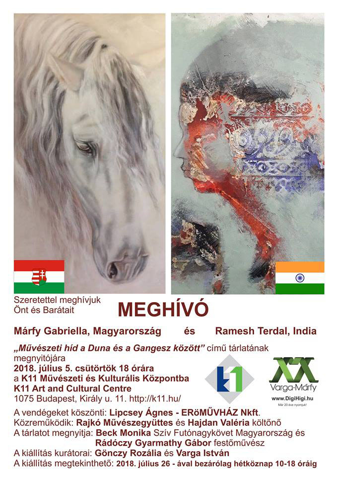 2018.07.05.-én a K11-ben 18 órakor kezdődik Marfy Gabriella festőművésznő és Ramesh Terdal indiai festőművész kiállítása, "Művészeti híd a Duna és a Gangesz között" címmel. A rendezvényen tiszteletét teszi az Osztrák-Magyar Társaság elnök asszonya, Homolya Zsófia is.