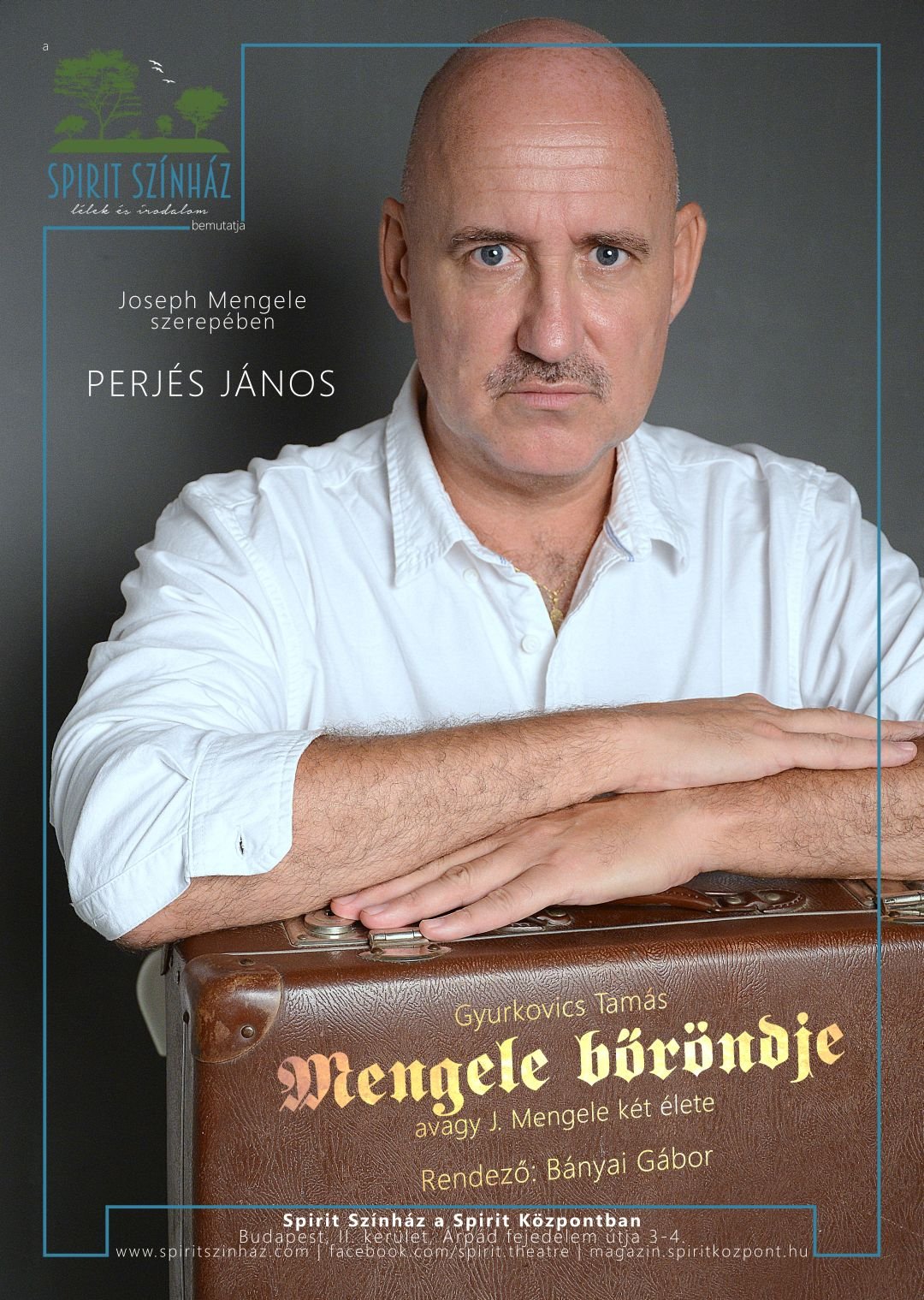 Ugyanezen a napon 19 órakor pedig egy ősbemutató kápráztatja el a közönséget. Mengele bőröndje címmel, Perjés János egyszemélyes előadásában, aki a Spirit színház alapító igazgatója is egyben.