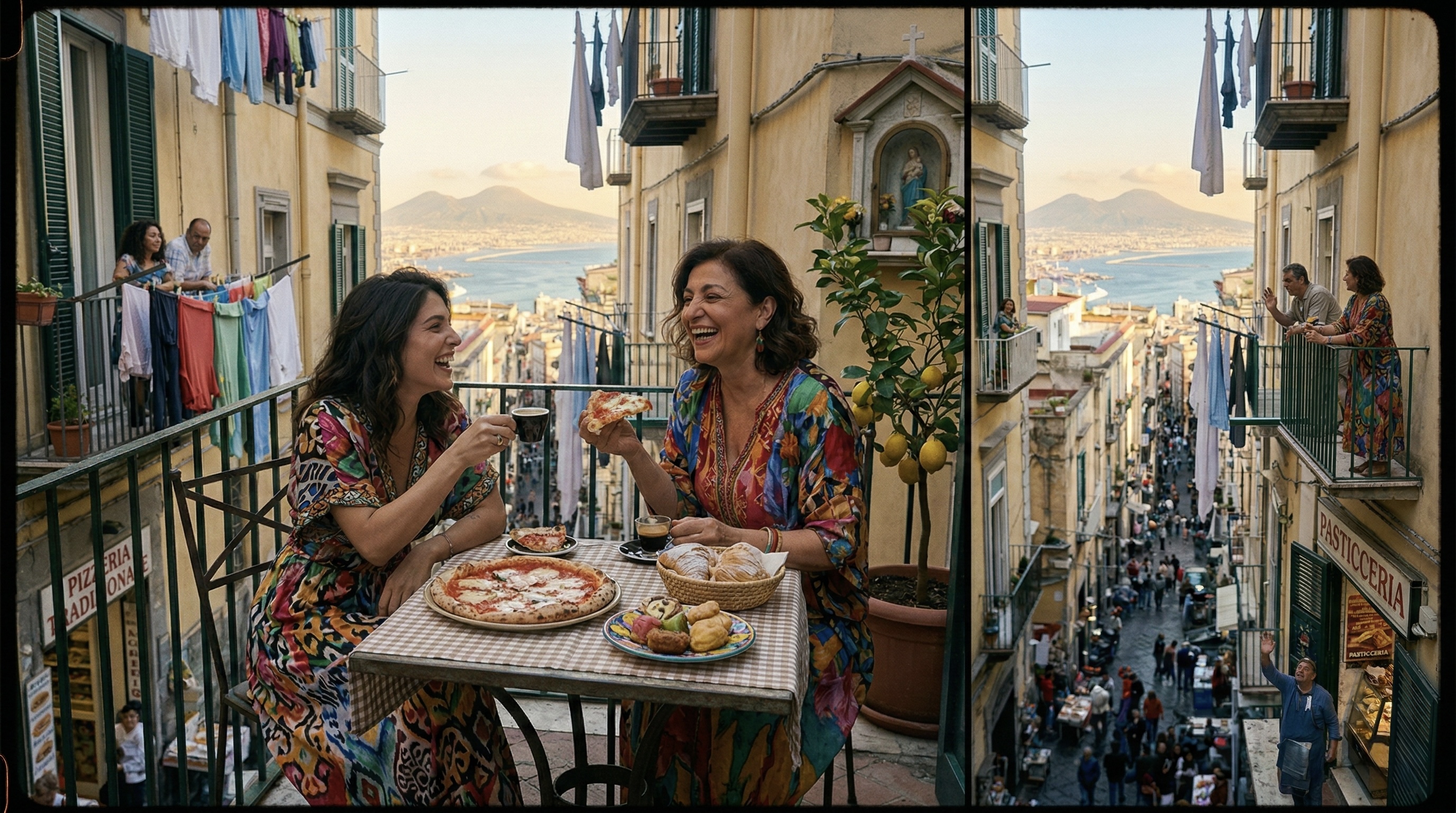 Itt a Dolce Vita olyan, mint egy folyamatos ölelés az élettel — az utcák kaotikus lüktetésétől a spontán találkozások melegéig, az utcai ételek illatától a Nápolyi-öböl és a Vezúv lélegzetelállító panorámájáig.